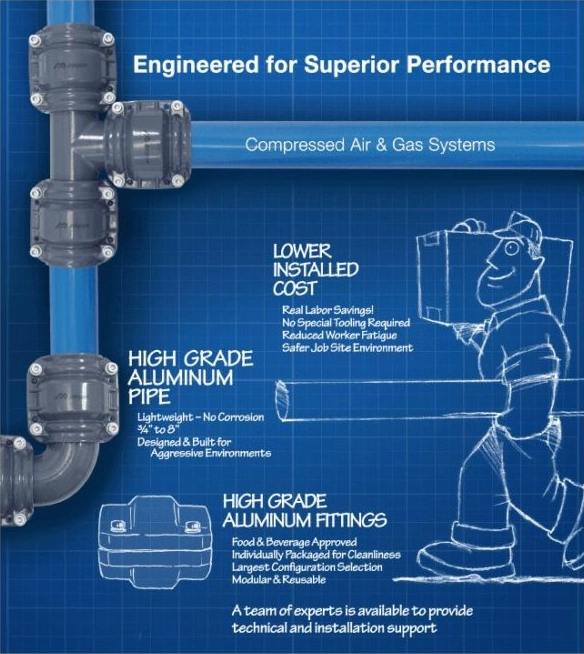 With over 25 years of innovation, AIRpipe has delivered more than 42,000 km of pipe across 32,000 projects worldwide. The modular aluminium system is corrosion-free, 70% lighter than steel, and assembles with push-fit fittings — no welding, no threading, no specialist tools. The result: faster installation, lower maintenance costs, and a cleaner compressed air network.