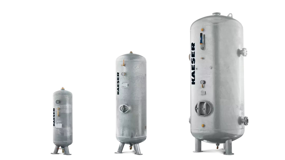 KAESER's compressed air storage and pressure maintenance products ensure a stable, reliable supply at the point of use. Properly sized air receivers buffer demand peaks, reduce compressor cycling, and help lower energy costs. Paired with KAESER pressure maintenance equipment, they form the backbone of an efficient compressed air network.